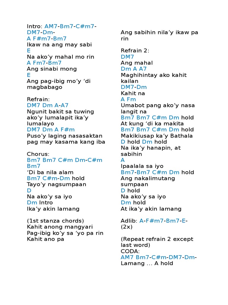 May 19 2016 Enjoy. G A6G AG Fm Bsus Bm Ang bawat panga - lan kalaro kaibi - gan Em A D Iisa pa lamang ang minahal ko ng ganito. Mamahaling hiyas ni gintong nilukob.
