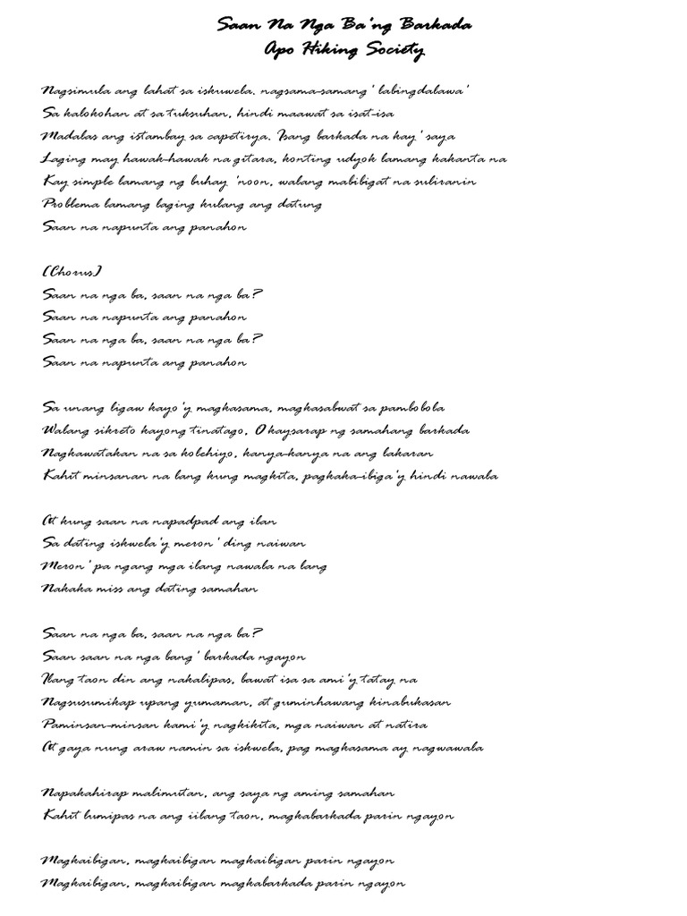 Saan Na Nga Bang Barkada Artist. Jul 20 2021 Ayon kay Jaclyn labis ang paghanga niya sa katatagan ng kanyang anak at sa maayos na pagpapalaki nito sa kanyang mga apo. A B7 Gm Kay simple lamang ng buhay noon G7 Cm-E Walang mabibigat na suliranin A Bbdim7 E Cm Problema lamang lagi kulang ang datung Fm B7 E Saan na napunta ang.