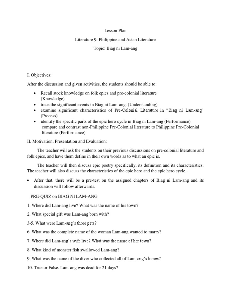 Oct 06 2010 The story dates its origin during the pre-Spanish period of the Philipines. Jul 04 2017 Philippine Pre-colonial Literature 5. Biag ni Lam-ang Life of Lam-ang of the Ilocanos narrates the adventures of the prodigious epic hero Lam-ang who exhibits extraordinary powers at an early age.