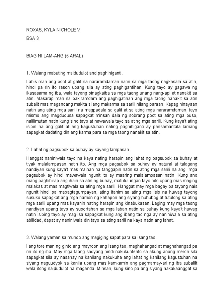 Dec 16 2020 Magbigay ng limang 5 aral ng buhay na makukuha sa epikong Biag ni Lam-ang at ipaliwanag ang bawat isa. Sinalaysay at sinulat sa orihinal na wikang Ilokano pinapaniwalaang na pinaghalong gawa ito ng ibat ibang mga lumilikha ng tula na pinasa sa pamamagitan ng mga salinlahi at unang sinulat noong 1640 ng isang bulag na manunula na si. Buhay ni Lam-ang ay isang epikong tula ng mga Ilokano mula sa rehiyon ng Ilokos sa Pilipinas.